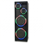 Huminex Danger tower speaker with dual 8″ woofers, Bluetooth v5.0, and multi-connectivity. Delivers powerful bass, immersive sound, and a high-energy party experience